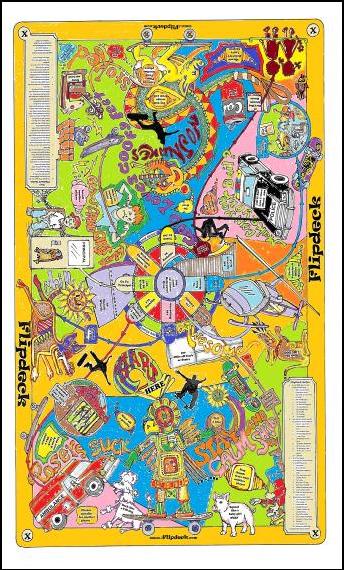 The Flipdeck Poster/game is copyright Steven Boehret 2015 with Patent Pending. The initial printing is 24”X36” paper format with optional printing on vinyl, card board or other suitable size and or material as determined appropriate for distribution. Available with either standard colors and/or fluorescent black light suitable colors.